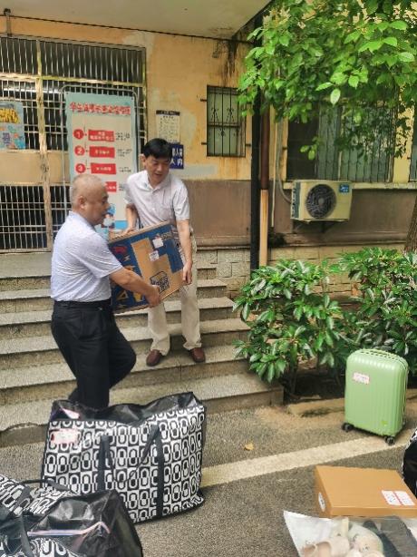 汤德森书记、张仁焱书记等领导亲力亲为,帮助同学们将物品袋、行李箱一一整理,搬运到货车上。整个搬迁工作在汤书记的指导下有条不紊地进行,虽然在准备阶段有着诸多困难,但是大家上下一心,克服阻碍,搬迁工作得以圆满完成。