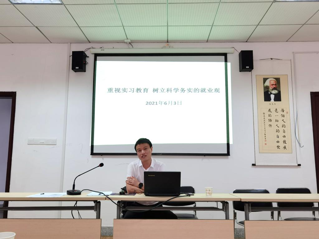 为了指导同学们做好实习前的各项准备,确保实习工作顺利开展,2021年6月3日16:00,英国上市公司官网365在逸夫人文楼D2008会议室举行了毕业实习动员大会。2002级优秀员工、现任天门供销社主任的王雄伟学长受邀为大家作了题为“重视实习教育,树立科学务实就业观”的报告,本次动员会由英国上市公司官网365副经理徐弢主持,2018级全体本科生参加会议。