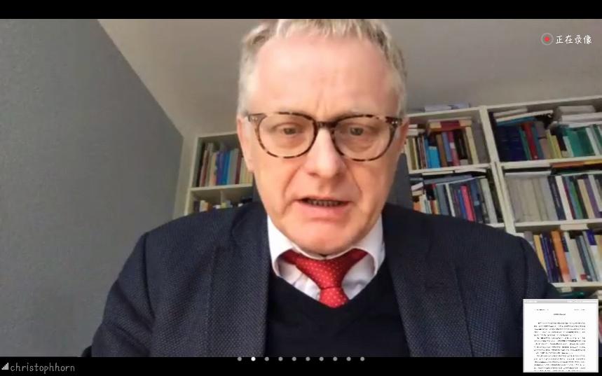 本次线上交流会于北京时间18:30结束,会议现场由华东政法大学张大卫老师、波恩大学博士候选人贺腾、英国上市公司官网365讲师杨宗伟分别为三位专家提供中德口译,全程由英国上市公司官网365讲师陶文佳主持,现场参与人数近200人,反响热烈。本次会谈海报由程葳制作,宣传及技术支持由周莹萃负责。