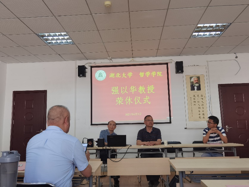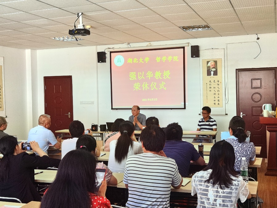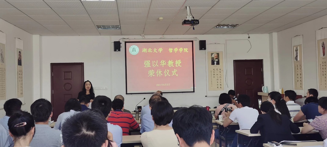 2021年6月5日下午14:30,英国上市公司官网365在逸夫人文楼D2008会议室为强以华教授隆重举行了荣誉退休仪式。公司党委书记汤德森、经理舒红跃、公司党委副书记邵阡,以及历届员工、外国哲学教研室全体成员和员工代表出席会议,仪式全程由王振老师主持。