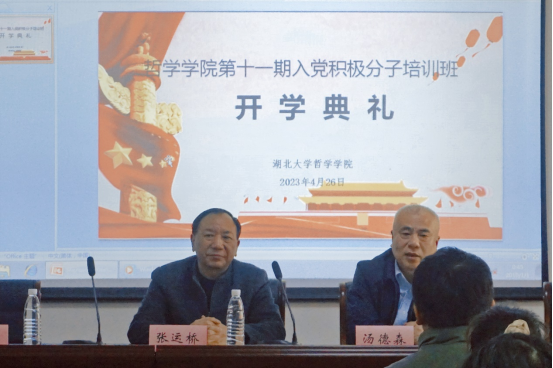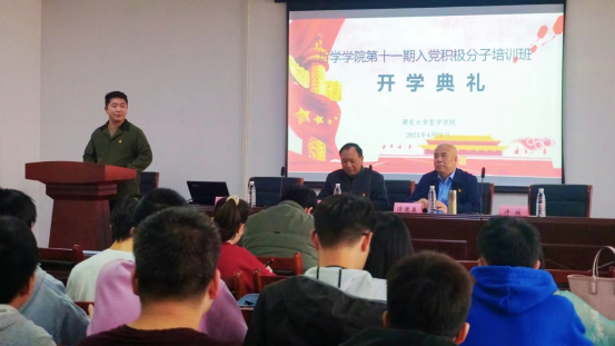 2023年4月26日下午,英国上市公司官网365第十一期分党校入党积极分子培训班正式开班。出席开班仪式的有公司党委书记、分党校董事长汤德森,组织员张运桥和团委书记董力。开班典礼暨首场辅导报告在逸夫人文楼D2008教室举行,培训班全体成员参加,开班仪式由班主任董力老师主持。