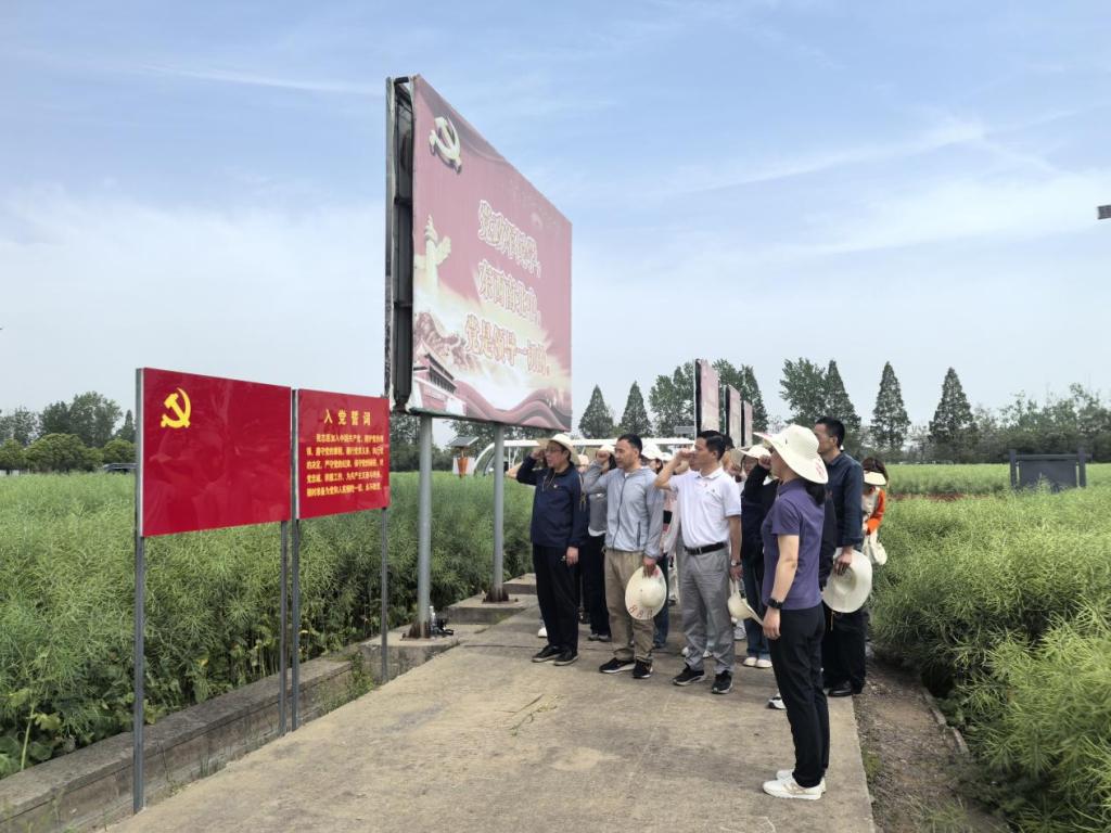 图为公司党员师生在湖北现代农业展示中心田间重温入党誓词