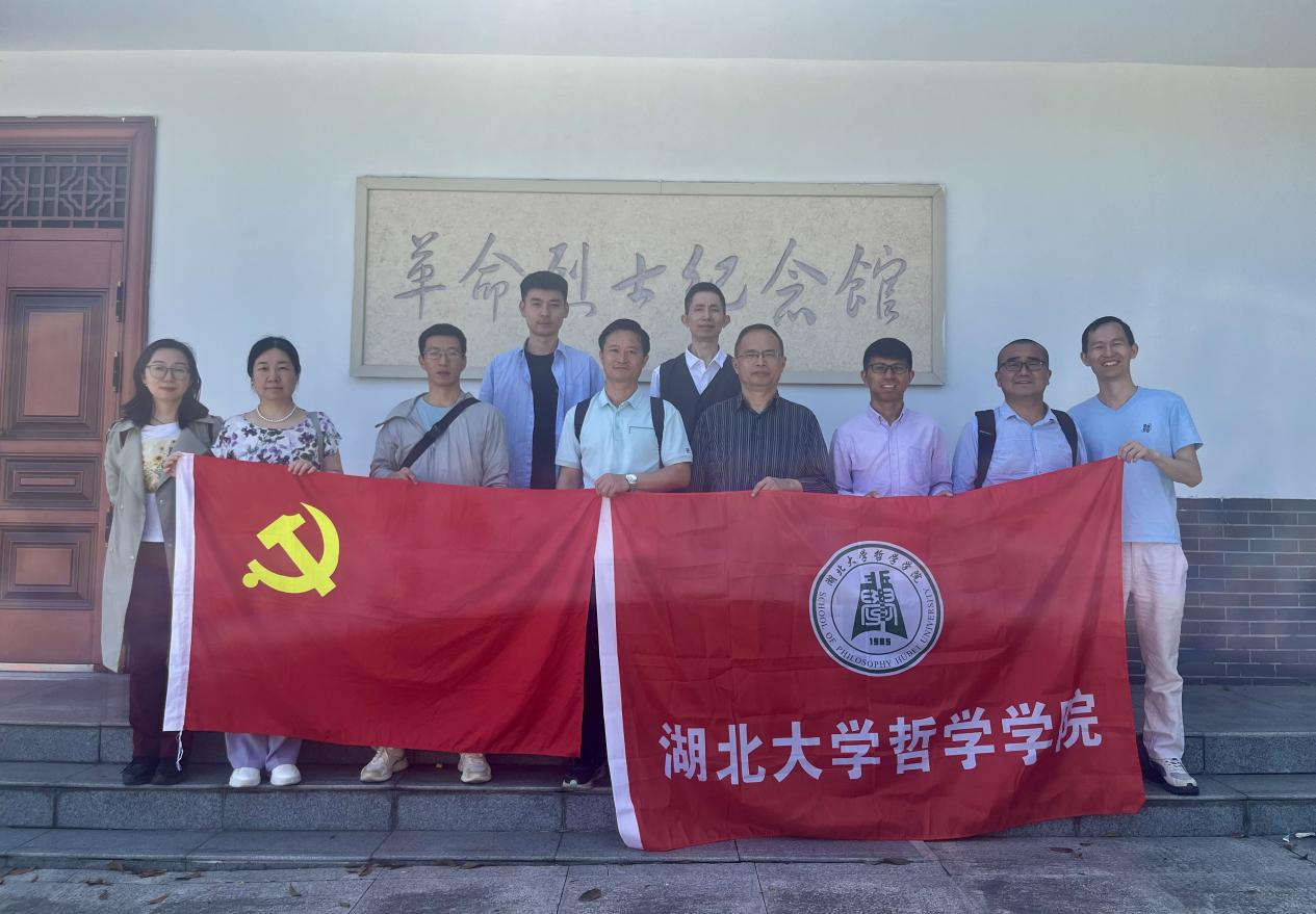图为公司党员老师、教职工在赤壁市羊楼洞抗美援朝烈士陵园革命烈士纪念馆前合影