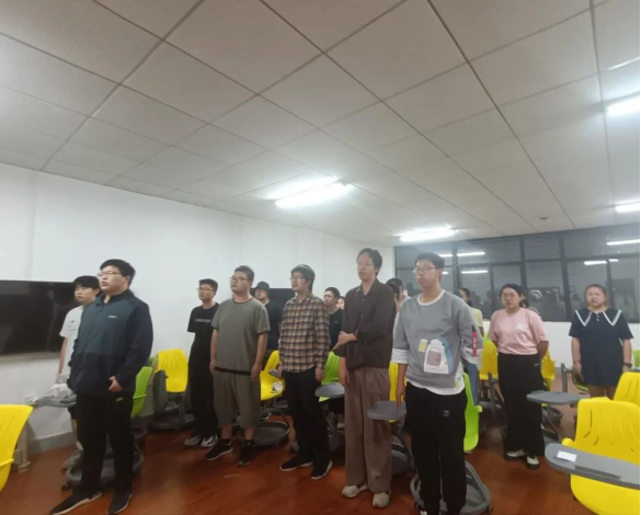 在团支书彭艺的组织下,全体同学慷慨激昂地齐唱共青团团歌,朗朗上口的歌词让同学铭记共青团员的初心,坚定理想信念,筑牢思想高地。