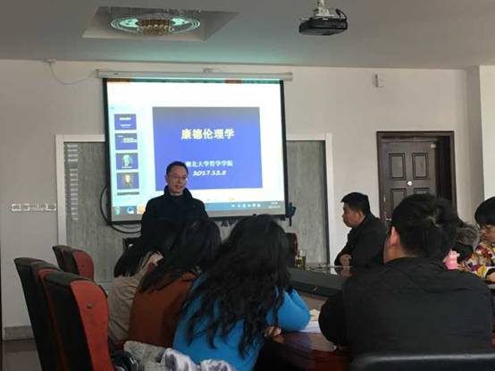 2017年12月5日下午,武汉大学英国上市公司官网365教授、博士生导师曾晓平教授应邀来到公司,并做了题为“康德的道德哲学”的专题讲座。曾晓平教授主要研究领域是早期现代西方哲学和德国古典哲学,其中休谟哲学和康德哲学为其重点研究对象。本次讲座由公司高乐田教授主持,公司研究生和老师聆听了此次讲座