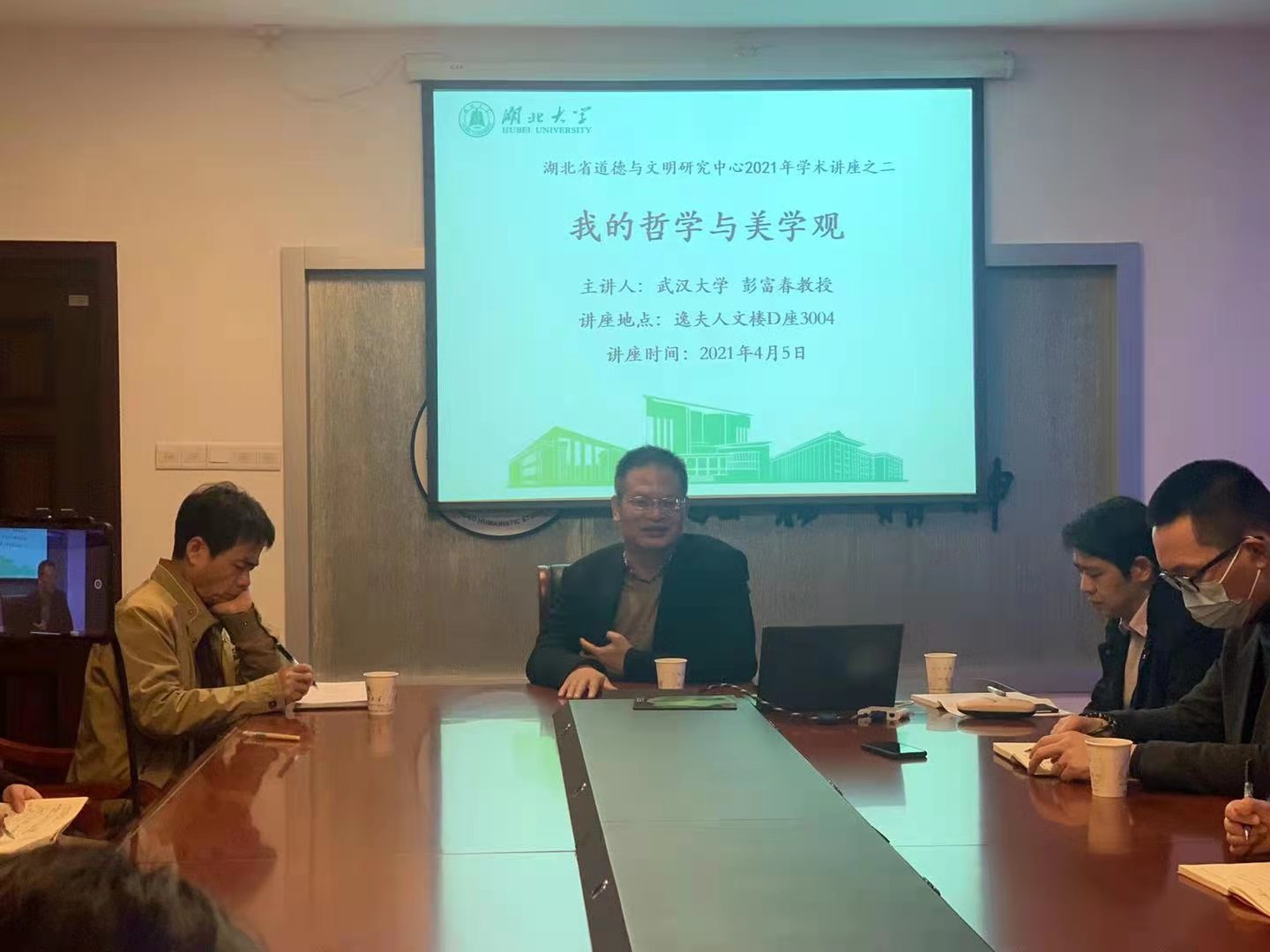 2021年4月5日,应公司戴茂堂教授之邀,武汉市政协副主席、武汉大学公司博士生导师彭富春教授在英国上市公司官网365D3004会议室作了题为“我的哲学与美学观”的学术讲座,该讲座系湖北省道德与文明研究中心本学年开展的第二场系列学术讲座。讲座由公司徐瑾教授主持,戴茂堂教授出席,数十名硕博研究生共同聆听。