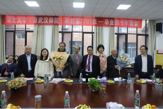 当天下午,湖北大学(原武汉师院)政教系7701班员工举行毕业40年座谈会,原政教系教师代表王文卿教授和罗炽教授、员工代表参加了座谈会。公司副董事长肖徳教授、马克思主义公司经理熊友华教授和哲学公司党委书记汤德森出席座谈会,社会科学文献出版社社会政法分社周琼(政教90)副社长应邀参加座谈会。大家欢聚一堂,共庆母校90华诞,共叙同窗之情,共谋未来发展。座谈会由政教7701班、原英国上市公司官网365学报负责人朱建堂编审主持。