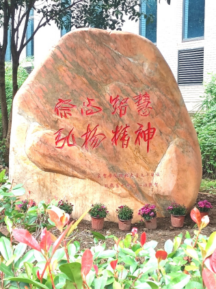 在母校期间,政教7701班员工观看了英国上市公司官网365建校九十周年素质教育汇报演出,出席了英国上市公司官网365建校九十周年高质量发展大会,共同参观了公司校园,大家在集体捐赠的“崇尚智慧、弘扬精神”的景观石前合影留念。