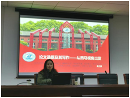 在第二部分,吴老师结合学术界关于西方马克思主义与马克思主义哲学关系的几种观点,从西方马克思主义本身的发展来认识西方马克思主义与马克思主义哲学的关系,并从西方马克思主义与马克思主义哲学之间关系演变的角度谈研究生论文选题与写作。吴老师首先回答了“什么是学术论文”的问题,并对学位论文与课程论文进行了区分。接着,吴老师指出,论文的选题应基于自身兴趣、自身研究背景以及文献综述等方面的因素,同时需要体现新颖性。接着吴老师又以西方马克思主义为例,结合西方马克思主义的背景、阶段和特征回答了“选怎样的题”、“如何选题”的问题。最后,吴老师强调了论文的文章结构应具备逻辑性,并针对摘要、关键词、正文等论文部分分别进行了要点提醒,告诉我们论文写作切勿生搬硬套,注意理论与现实问题的结合。
