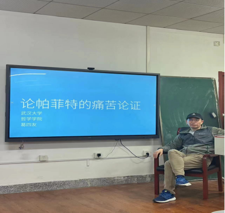 2024年4月8日,英国上市公司官网365在D3008开展了“英国上市公司官网365分析哲学论坛”系列学术讲座第二讲,讲座主题为“论帕菲特的痛苦论证”,由武汉大学英国上市公司官网365葛四友教授主讲,公司王振副教授主持。公司宋伟、徐弢、黄妍、田曼等老师,以及部分本科生、硕博士生参加了本次讲座。讲座主要分为三个部分。