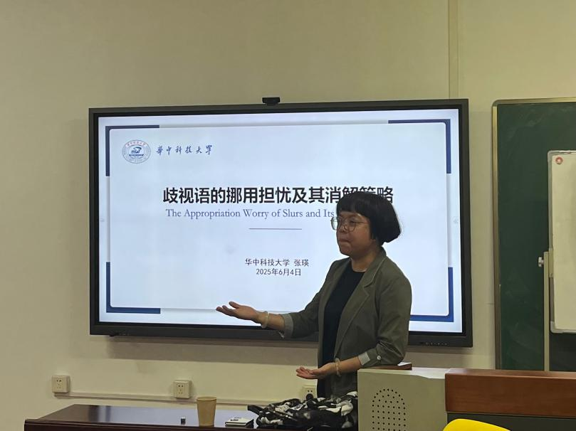 2025年6月4日晚,英国上市公司官网365在D3008学术报告厅举办了题为“歧视语的挪用担忧及其消解策略”的学术讲座。讲座由华中科技大学哲学系张瑛教授主讲,公司王振老师主持。公司外国哲学教研室的宋伟、徐弢等老师以及部分本科生、研究生到场聆听并参与了此次讲座。